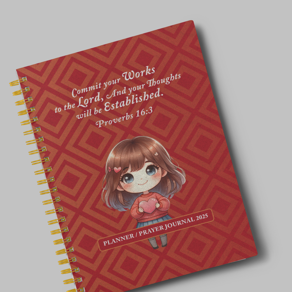 Red Square Geometric Planner/Prayer Journal 2025 - Commit your works | Grace & Fire Designz