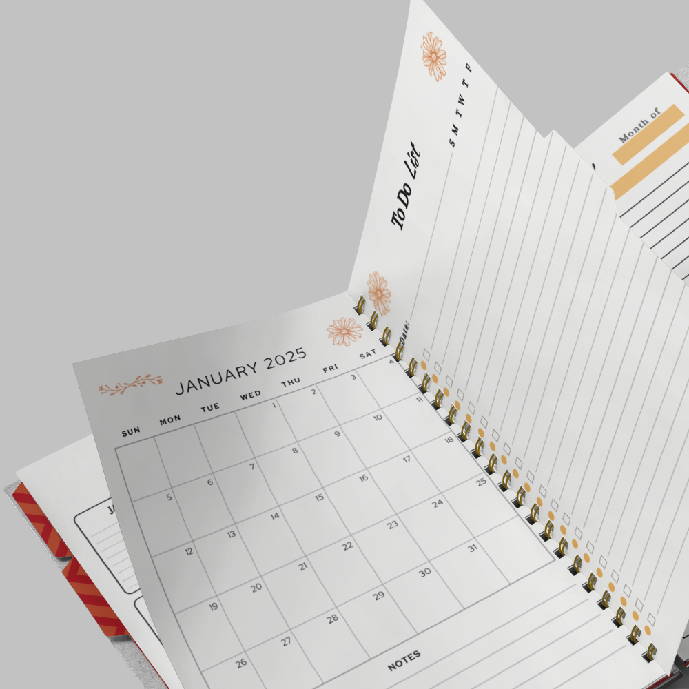 Get organized with our Red Square Geometric Planner/Prayer Journal 2025! This all-in-one journal features 104 pages with tabs and a golden wire binding. Start your year off right and stay on track with ease. Perfect for planning and spirituality.