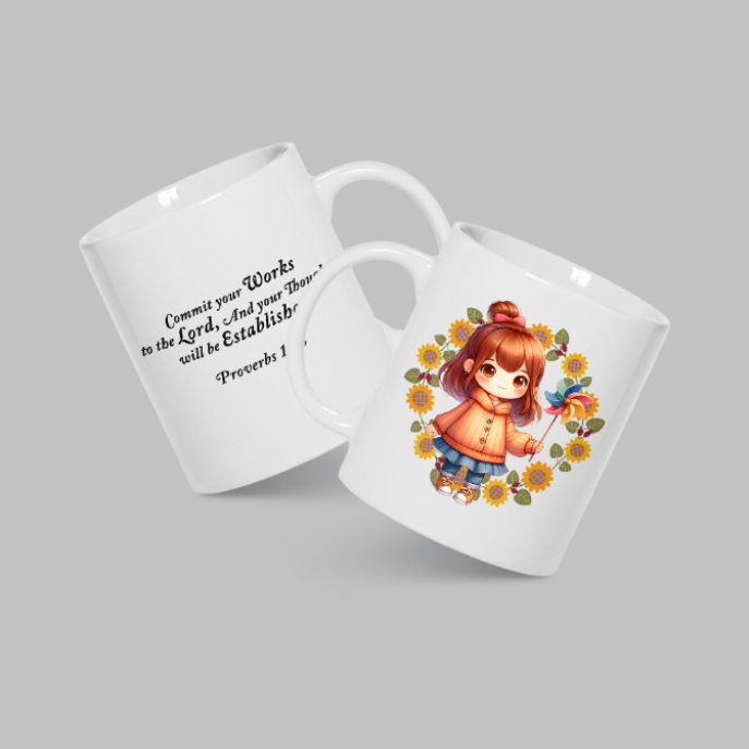 Add a touch of charm to your morning routine with our Style #3 - Commit Your Work Mug! Featuring a cute girl surrounded by autumn flowers, this 11oz. white glossy mug is the perfect addition to your collection. Complete the look with our matching planner/prayer journal for 2025.